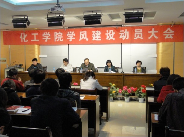 教师代表柴凤英副教授在发言中,代表教师郑重承诺从自身做起,从细节做起,以勤奋、诚信互勉。09化学教育班郭玉婷代表员工承诺严格要求自己,端正学习态度,提升本身的素养做一名合格老员工。团学办杨全录老师通报了上学期各班晚自习的出勤率和名次,相信动员大会后,学风建设必将扎实推进。