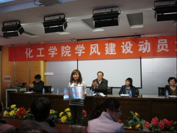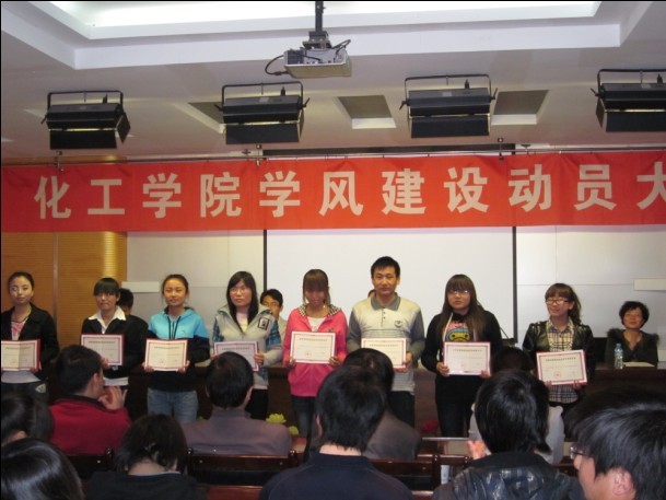 动员大会上党总支副书记、副经理张兴辉同志宣读了《BV伟德官方网站学风建设实施方案》。公司副经理展惠英同志宣读了获奖集体和获奖员工名单,出席会议的院领导为获得2010年度甘肃省五四红旗团支部标兵的09级应化二班、国家奖学金获得者08级工业分析与检验专业的王霞宁同学、获国家励志奖学金的员工代表、获校级优秀奖学金、校级三好员工、校级优秀员工干部员工代表颁发了获奖奖牌和证书。