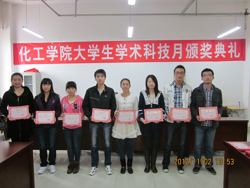 接着,院领导和教师代表分别给在甘肃联合大学第二届化学分析技能大赛中徐向横等21名员工、甘肃联合大学第一届化工总控工大赛及化工模型大赛中取得优异成绩的 薛严严等52名员工颁奖,给2011-2012学年10名优秀员工助理实验员颁奖,并向2012-2013学年员工助理实验员颁发了聘书。