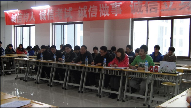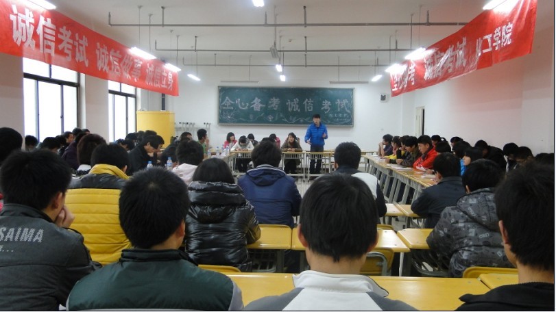 交流会分为:重申公司关于考试的各项规章制;励志奖学金获得者传授他们的学习经验;讲自己学习的技巧和复习功课时的好方法;同学谈自己对考试舞弊的危害;讲一些成功人士的拼搏历程等环节。胡主任讲到:“真诚希望各位同学凭自己辛勤的汗水和真才实学,在考场上发挥出色水平,以诚信考试为荣,以危机作弊为耻,弘扬求实学风,维护知识的尊严,用诚信品德向自己、家长和老师交一份满意的答卷。”各院员工会主席也表示要努力带动各院员工干部以身作则,积极影响身边的每一位同学。
