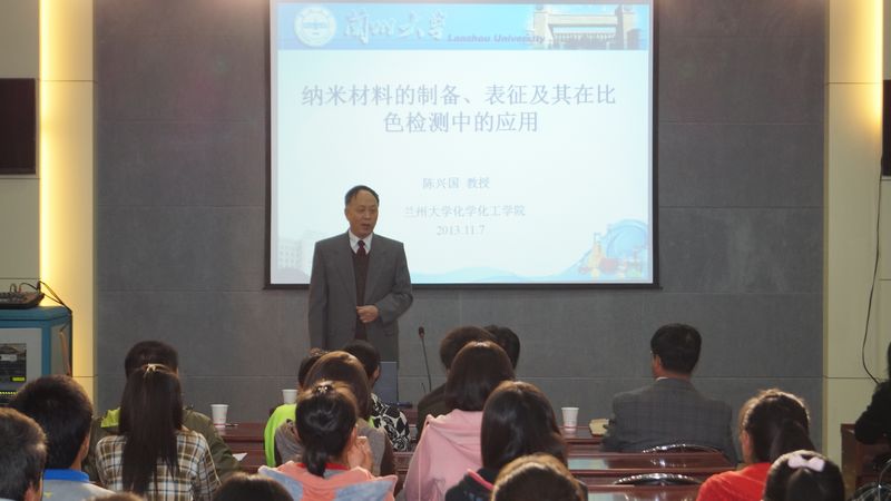 为营造浓厚的科研氛围,构建应用化学合格本科专业,搭建师生学术交流的平台,11月7日下午,科技处、BV伟德官方网站联合邀请到兰州大学化学BV伟德官方网站博士生导师陈兴国教授在公司视频会议室做了一场题为“纳米材料的制备、表征及其在比色检测中的应用”的学术报告。报告由李欣教授主持,公司应用化学专业100多名员工和部分教师参加了报告会。