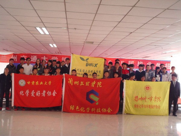 2015年4月11日,第二届甘肃高校化学社团环保交流会在兰州交通大学博文公司举行,公司绿色化学科技协会应邀参加了此次交流会。参加此次交流会的社团还有甘肃农业大学化学爱好者协会、兰州城市公司绿色化学与环境保护协会和兰州交通大学博文公司绿色环保志愿者协会。