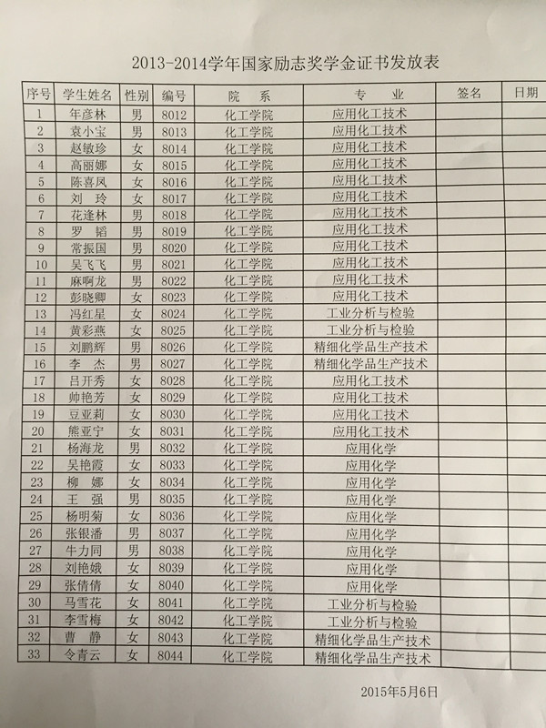 热烈祝贺公司年彦林等33名同学获得国家励志奖学金
