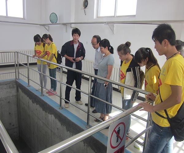 上午9:30,暑期实践团队来到了兰州新区给排水有限公司第一给水厂。大家参观了混合、反应、沉淀、过滤等生产处理车间,在老师的详细讲解和悉心指导下,队员们了解了各个工段的设备、装置流程和操控系统,初步了解了工厂各个工段的工艺指标,对工厂的管理制度也有了简单的认识。了解化工生产的方法和工艺流程,弄清主要工艺参数确定的理论依据,了解生产中的技术革新措施,并注意新技术发展趋势。参观结束后,在会议室与企业相关负责人进行了座谈交流。同学们围绕兰州新区自来水的供应、节水、水质及水资源的保护等情况进行了提问,企业负责人耐心详细地回答了每个问题。