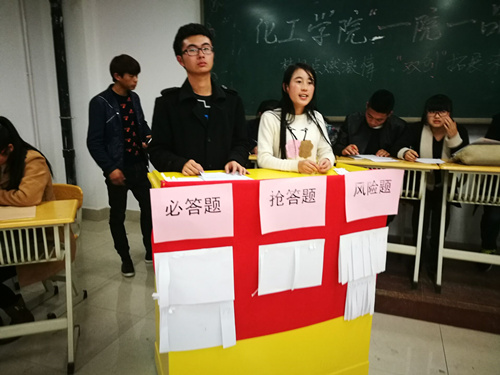 此次创新创业知识竞赛分为个人必答题、集体必答题、抢答题、风险题、加试抢答题五个环节。来自全院的15个代表队,经过激烈角逐,最终16应用化学1班获得冠军、15应用化工技术3班获得亚军、15应用化工技术2班获得季军。比赛过程中,现场气氛活跃,高潮迭起,各队队员相互配合,积极思考,冷静应对比赛中的各种考验,在比赛中充分展现出他们对创新创业知识的了解及其运用,其中周玉平与薛启超的反应速度及应变能力表现突出。充分展现了新一代老员工积极向上的精神风貌和个性活力的青春风采。最后,分团委副书记胡丽娟为表现优秀的班级颁发了荣誉证书。
