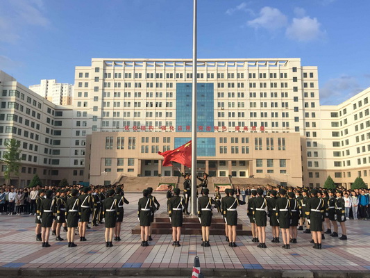迎着清晨第一缕阳光,国旗护卫队队员们精神抖擞,迈着矫健的步伐,在全院师生的注视下,护送鲜艳的五星红旗入场。伴随着庄严的《中华人民共和国国歌》,五星红旗冉冉升起,迎风飘扬。全体师生怀着崇高的敬意向国旗行注目礼。