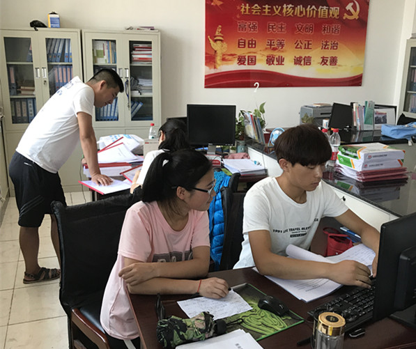 为了很好的参与到全国文明城市的创建中,提升社会认知度及老员工的全面素质,由公司学工办主任朱梓瑞、分团委书记李卉老师带队前往雁南街道办事处,助力雁南街道办事处创建全国文明城市测评迎检工作,街道办事处领导首先向实践团队详细介绍了雁南街道的人员构成、职责和制度以及办事流程,使同学们更直观更具体地了解街道的运作模式,便于更快更好的开展工作。接下来对同学们进行了分组,两人一组分别前往沙洼河村、大雁滩村、张苏滩村、滩尖子村四个社区,就各社区开展的身边的好人、志愿者服务、关爱空巢老人、留守儿童、道德讲堂、我们的传统节日等活动进行了资料的搜集、汇总、整理、归档等工作。社区书记向小组成员介绍了各社区开展活动的情况,浏览了活动记录、照片等,随后,在社区书记的安排指导下,小组成员开始了各自相应的工作。同学们认真仔细的搜集总结,加快工作进度,克服了资料要素不齐、格式不规范、分类不清晰等问题,最终在社区书记和同学们的共同努力下,资料设计合理、角度独特、分类清晰,顺利的完成了各项工作,得到了社区工作人员的一致赞赏。