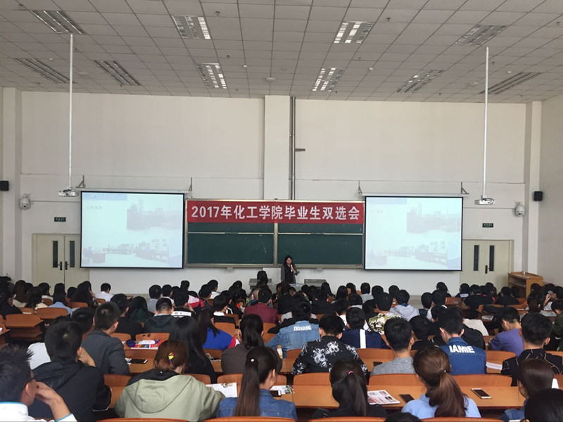 9月23日上午进行宣讲时,5-407阶梯教室座无虚席,共有300多名同学参加了此次宣讲会。18家企业依次进行宣讲。通过播放视频宣传片、PPT展示、面对面交流等方式向同学们介绍公司的概况、职业发展方向、福利、工作生活环境、人员需求数量等。针对同学们的问题,各个公司的人员也进行了详细的解释。虽然参加此次双选会的企业众多,宣讲时间较长,但员工们的热情高涨、气氛热烈,特别是每一位企业宣讲老师进入教室时同学们都起立、鼓掌,良好的校风、学风得到了用人单位的高度评价。