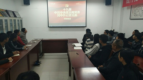 2017年10月25日上午,中共共产党十九届一中全会选举产生新一届中央领导机构,并举行新一届中央政治局常委中外记者见面会。按照公司党委宣传部的安排,公司组织2017级部分员工在会议室收看了新一届中央政治局常委中外记者见面会的直播。