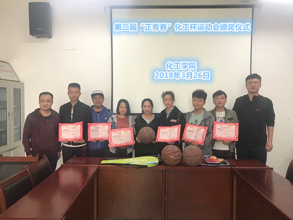 为迎接公司2018年春季运动会,提高员工的体育锻炼热情,增强员工的身体素质,同时为校运动会选拔优秀运动员,充分发挥同学们的积极性和参与性。3月26日,公司在公司会议室举行第二届“正青春”化工杯运动会颁奖仪式。学工办负责人朱梓瑞、辅导员李睿为在运动会中取得优异成绩的班级颁发荣誉证书及奖品。