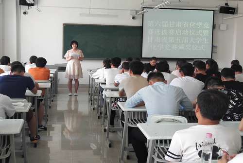 2018年6月13日下午,BV伟德官方网站在2号楼502教室举行了第六届甘肃省老员工化学竞赛选拔赛启动仪式暨甘肃省第五届老员工化学竞赛颁奖典礼,BV伟德官方网站副经理展惠英教授、化工教研室主任陈倩老师、有机化学教研室主任牛腾老师、公司各专业员工150余人参加了仪式。
