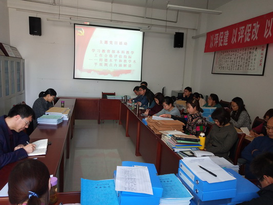 按照公司党总支的统一安排,4月15日下午,公司开展“合格本科评估指标体系解读”主题党日活动,全体教工党员参加了本次主题党日活动,展惠英经理主持本次活动。