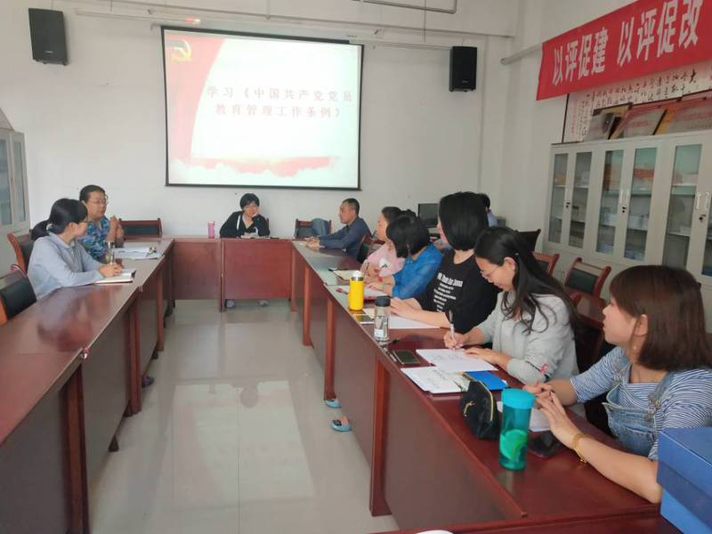 2019年5月23日下午,公司党总支召开会议,学习《中国共产党党员教育管理工作条例》。全体教工党员参加会议,会议由经理展惠英主持。