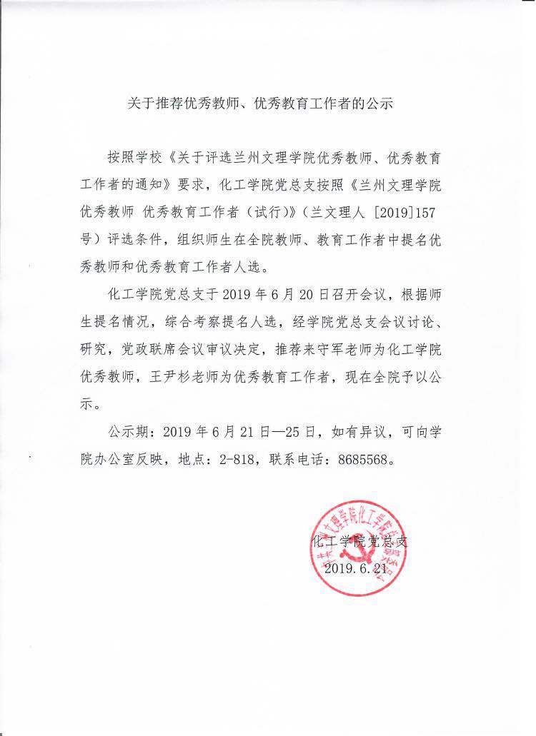 BV伟德官方网站关于推荐优秀教师、优秀教育工作者的公示