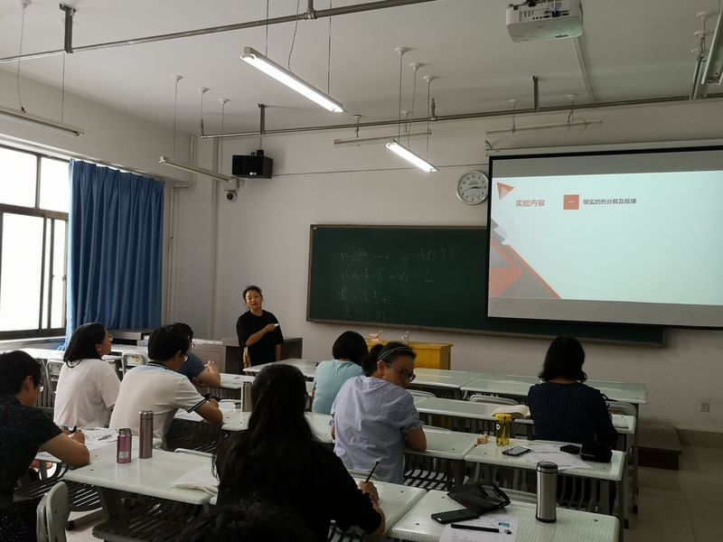 王吉霞老师展示了她在《无机化学实验》中,运用她多年的教研成果,采用“分段式”教学方法,引导员工完成零碎的无机化合物性质验证实验,王老师利用与生活息息相关的视频激发员工学习的兴趣,将“绿色化学”和“科学素养”等“思政”内容巧妙的融入到教学中,充分体现了课程思政的育人功能。