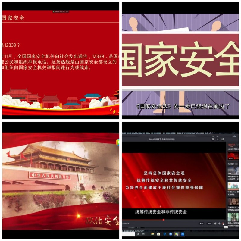各班团支部通过腾讯会议以PPT演讲的形式进行了一次线上主题团日。各班组织观看了2020年国家安全教育日宣传片,并结合4月9日收看的“老员工消防公开课”展开本次主题团日活动。各团支部通过腾讯会议,以屏幕共享的方式,向同学们展示了与活动主题相关的资料,引起同学们的热烈讨论,同学们纷纷表示,国家安全荣誉至上,国家利益高于一切,应是每个人必须要牢固树立的观念,尤其是作为新时代的青年,肩负着实现中华民族伟大复兴的历史重任,因此更要把爱国之情、强国之志、报国之行融入到党和国家事业发展之中,从点滴做起,从自我做起,坚决捍卫国家安全。最后,各班团支部书记对团日活动进行了总结。