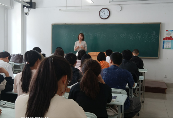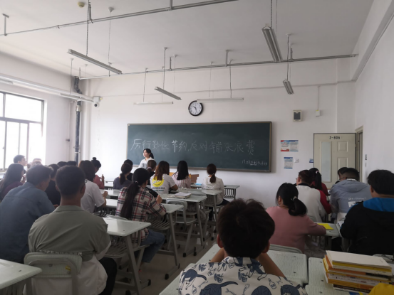 各班班主任以PPT讲解、观看短视频的方式,组织召开了形式多样、内容丰富的主题班会。班主任从党中央关于践行“厉行节约、反对浪费”的历程,向员工讲解党中央对于厉行勤俭节约的坚定决心和已取得的成效。告诫同学们一个人浪费一点粮食不显眼,但全社会加起来就是一个天文数字,餐饮浪费不是小事,事关我国粮食安全,事关社会道德风尚,事关良好作风养成,疫情敲响的警钟不允许我们有丝毫浪费的行为,勤俭节约,反对浪费贵在平时,重在坚持,希望同学们能珍惜当下来之不易的生活环境和学习环境。要求班委和员工党员作为员工中的标杆和领头羊,要做到以上率下,用自己节约的习惯与行动影响其他同学,起到榜样的作用。各班班主任倡议同学们在食堂用餐时,遏制“舌尖上的浪费”,践行“光盘行动”,按量所取,吃光盘子中的食物;用水时,坚决杜绝“长流水”现象;离开教室图书馆随手关灯,节约每一度电。