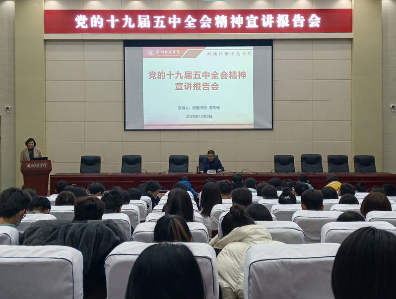 2020年12月3日下午,纪委书记李先锋在学术报告厅为师生作学习贯彻党的十九届五中全会精神专题宣讲暨“形势与政策”专题讲座。纪监审工会党支部全体党员、BV伟德官方网站全体教职工、BV伟德官方网站2018级全体在校员工200余人现场聆听。宣讲会由公司党总支书记贺志军主持。