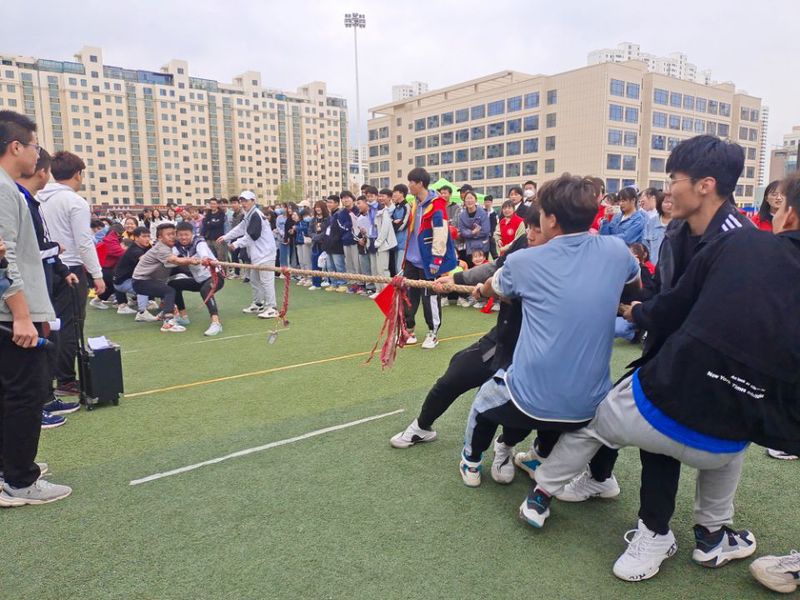 最激动人心的时刻当属趣味运动会中拔河比赛,先是各班级赛,后是19级VS20级友谊赛,拔河比赛的加油声将运动会推向了高潮。