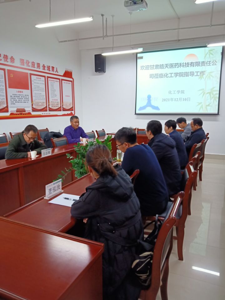 2021年12月10日上午,甘肃皓天医药科技有限责任公司副总经理王仕祥一行来到BV伟德官方网站洽谈深度校企合作事宜。BV伟德官方网站经理张兴辉,副经理师海雄、王尹杉及部分教师代表参加了交流探讨。