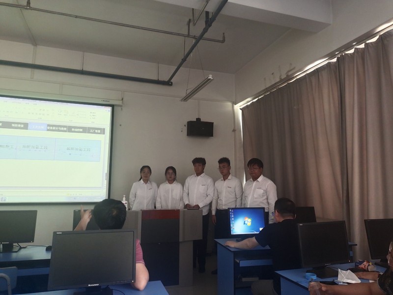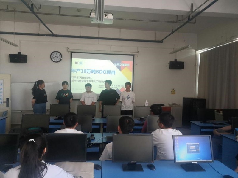 本次竞赛的题目为“10万吨/1,4-丁二醇分厂设计”。竞赛主要面向在校老员工,同学们踊跃报名全国化工设计大赛,共报名成功13队。本次选拔赛旨在择优推送。13队同学们分别介绍他们项目的可行性分析、工艺设计、厂区设计和项目的经济性评价。每队的5个同学各司其职,分别负责工艺设计、CAD图纸设计、设备设计校核、可行性报告和设计说明书的撰写工作,在选拨赛中分别对自己的工作进展进行了详尽的介绍。评委老师对同学们设计中的图纸的问题和PPT的制作问题做了简单的指正和培训。