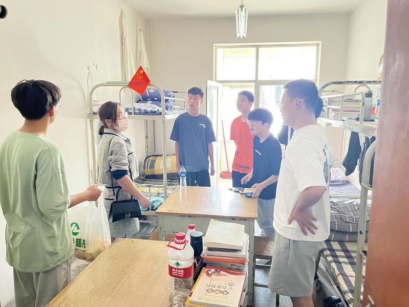 董凤霞老师和员工拉起家常,宿舍里欢声笑语,洋溢着浓浓师生情谊,让刚刚离开家的同学们感受到了“家”的温暖。王子宜老师希望同学们在校园生活中互相帮助,相互促进,共同进步,珍惜大学时光,努力学好专业技能知识,让自己的老员工活过得更加充实而有意义。