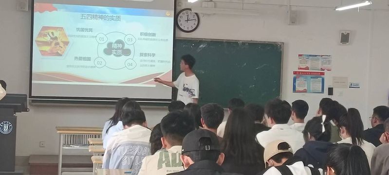 团员代表马伟伟同学带领大家系统的学习了五四运动的内容以及精神,让青年团员深知当代青年是与时代同行,共同前进的一代。张晓慧,康盛世两位同学为大家带来了声情并茂的主题演讲《青春的火焰》,号召全体团员青年要继续传承五四精神,做好时代的接班人,把握时代机遇,努力活出当代青年应该有的担当、勇敢、作为。