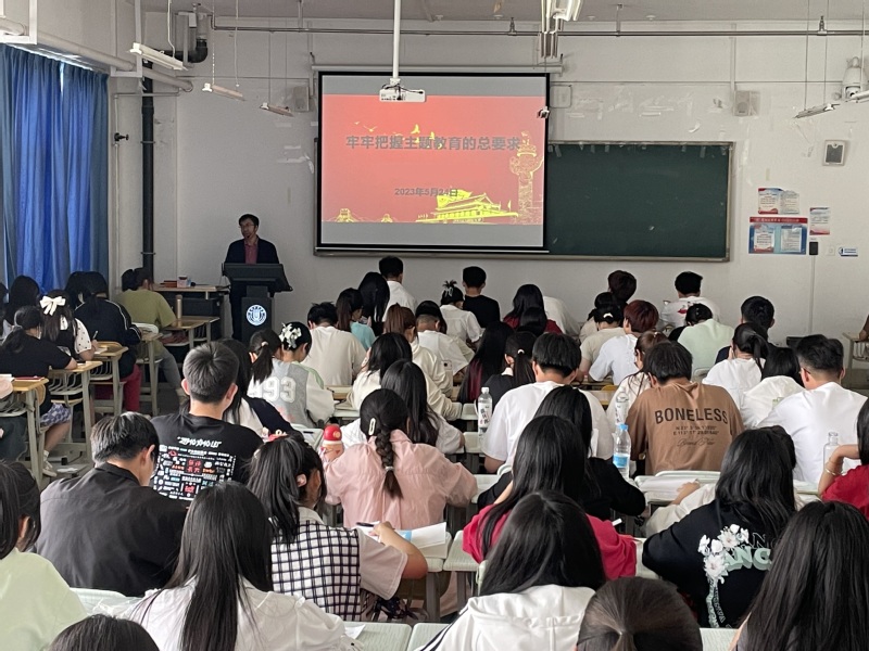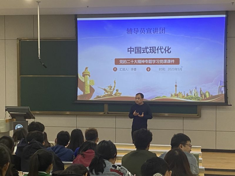 本次宣讲活动围绕“理想、担当、奋斗、青春”等篇章展开。党总支书记贺志军,副经理师海雄、王尹杉,辅导员李睿、刘茜,班主任雷芸进行主题宣讲。贺志军以《立志复兴伟业 踔厉奋发前行》为题,勉励同学们在党的二十大描绘的时代蓝图中成就自我,深刻认识作为新时代青年在“生逢其时当不负盛世”中所肩负的历史使命和时代重任,培养迎难而上、挺身而出的担当精神。师海雄以《牢牢把握主题教育的总要求》为题,和同学们互动交流,引导青年学子坚定理想信念,矢志不渝听党话、跟党走,把握大好学习时光,把个人理想追求融入民族复兴伟大征程。王尹杉以《激扬青春梦 奋进正当时》为题,结合党的二十大报告与大家分享,引导广大青年学子进一步深化理想认识,牢固树立马克思主义信仰,用奋斗的青春为蓝图画上浓墨重彩的一笔。李睿以《走好中国式现代化之路》为题,鼓励新时代中国青年把树立正确的理想、坚定的信念作为立身之本,努力成长为党、国家和人民所期盼的有志青年。雷芸以《聚焦二十大 青春心向党》为题,讲述了青年担当与青年使命,激励广大青年学子在党的二十大精神指引下奋发有为,展现青春力量。刘茜以《高举旗帜勇毅前行 让青春绽放绚丽之花》为题,畅谈在党的领导下,我国取得的巨大历史成就。进一步激发大家努力奋斗的青春热情,鼓励大家用实际行动向祖国交出最好成绩单!