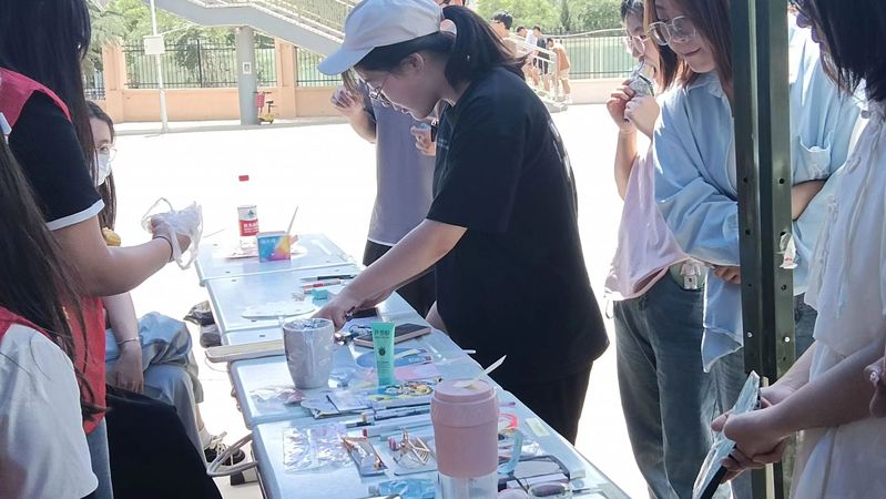 活动开始后,志愿者们在现场积极地协调组织,热情地接待前来了解活动的同学。活动进行中,吸引了大量同学前来参与。同学们在捐赠及交换物品时,在便利贴上写下自己对下一任主人的寄语,这些寄语有祝福、有鼓励、有感谢,然后将其贴于交换或捐赠的物品上。通过物品的捐赠与交换,很多物品得以被重复利用,旧物品也再次展示出了价值。