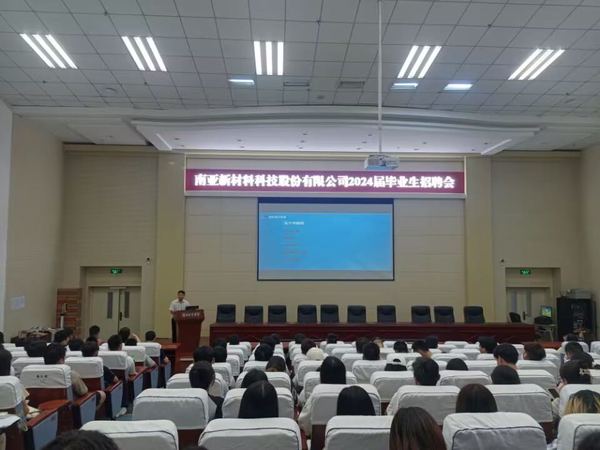 为进一步做好2024届毕业生就业工作,94日下午,公司在致远楼学术报告厅举办了“南亚新材料科技股份有限公司进校招聘宣讲会”,200多名2024届毕业生积极参加。