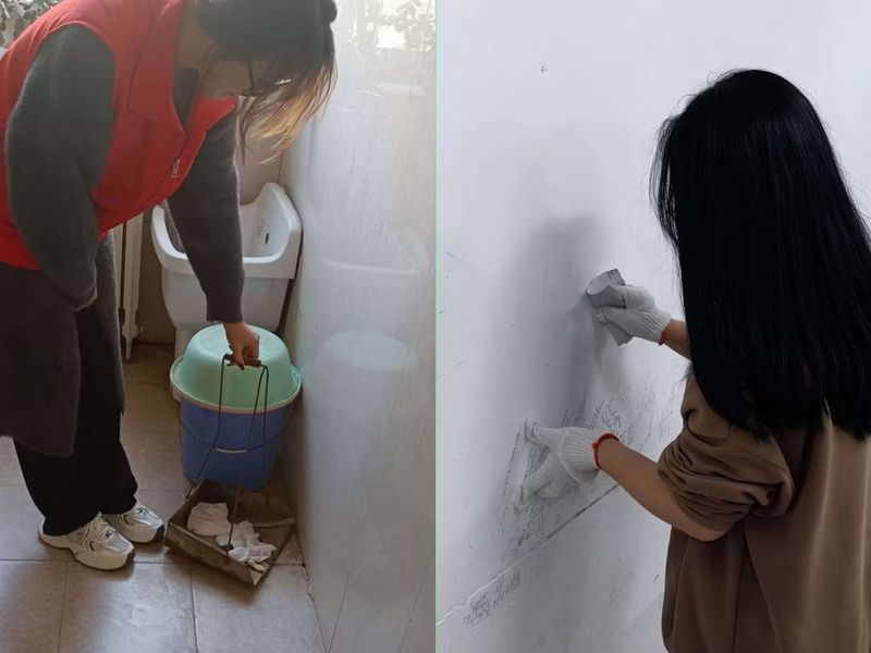 11月1日志愿者们对部分教室的墙面进行了清洁;每周星期五,公司辅导员及员工志愿者对包干楼宇宿舍进行卫生检查,督促同学们养成良好的生活习惯,打扫宿舍卫生。在公司发出“无烟校园倡议书”之后,志愿服务队担当了公司的“禁烟小卫士”,每个课间在楼道内清理散落的烟头,并劝阻同学不要在校园内吸烟。11月14日中午,公司院领导、辅导员和班主任带领员工志愿者,检查员工宿舍,进一步强调创建文明校园从自身做起、从现在做起,倡导健康的生活方式,杜绝吸烟等不文明行为。