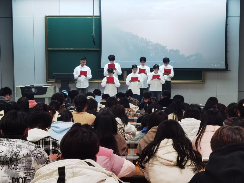 2022级应用化学专升本班同学以“扬帆起航,奋进新征程”为主题的朗诵,将活动气氛带入高潮。一百多年的风雨兼程铸就一百多年的光辉历程,蓦然回首,岁月如歌,我们又怎能不心潮澎湃,感慨万千!让所有同学感受到中国共产党作现实中华民族伟大复兴“中国梦”的领路人,是历史的必然选择,更是人民的必然选择。