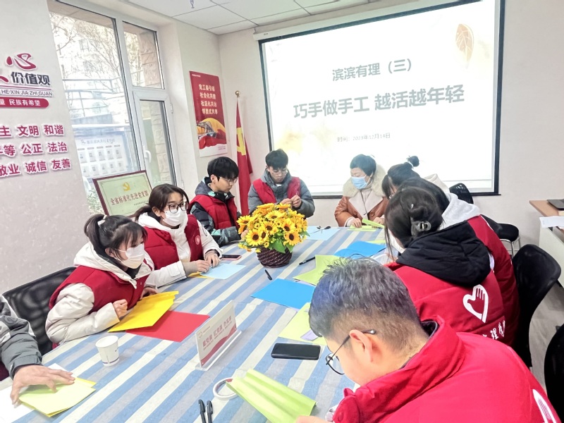 12月14日,公司党总支组织教工党员和员工志愿者到雁滨社区开展“双报到”活动。就深入开展“双报到”活动进行深度交流,共同开展“滨滨有理:巧手做手工,越活越年轻”共建活动。