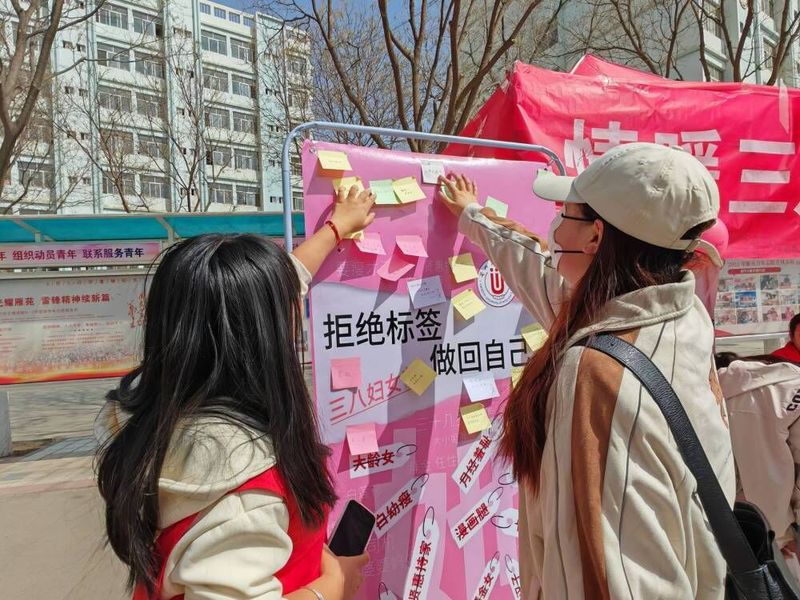 3月8日,为切实保障女性的身心健康,表达对女教师和女老员工的关爱,公司以“撕掉标签,拒绝被定义”为主题开展活动。在活动现场,同学们亲手撕掉对于女性具有恶意和歧视的标签,再用新的便利贴写下激励女性的语句,为参加活动的每一位同学送上美好的祝愿。通过这次活动,帮助女老员工拒绝外界标签,勇敢做自己。