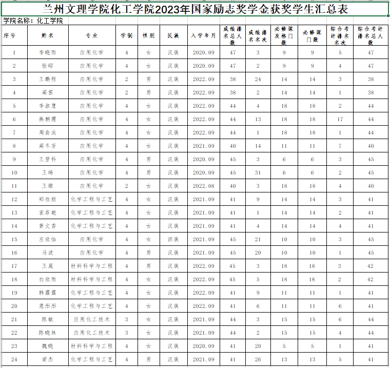 榜样的力量——BV伟德官方网站2023年国家励志奖学金获奖员工汇总表