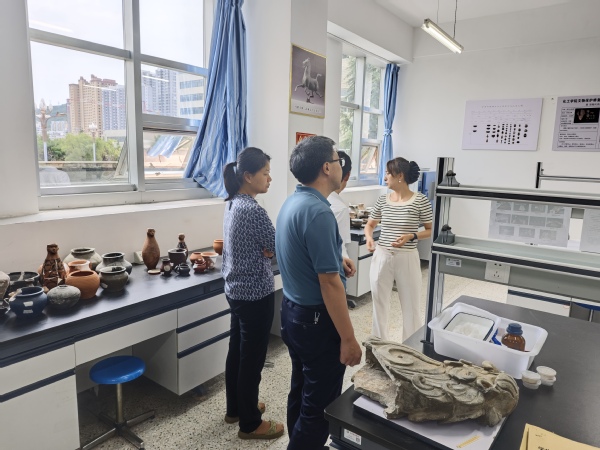 会后,文保系主任文娟带领参观了该专业的实验实训室。观摩了一些常见的陶质文物和纸质文物修复的实验设备和技术、以及员工的作品展示,老师们均表示触动很大,更加近距离地了解接触了文保修复工作,为公司加强文保材料开发研究和开办可移动文物修复技术微专业指明了方向,提供了思路。