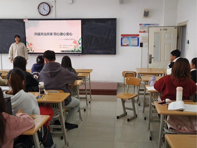 各班召开“共建共治共享 同心健心安心”主题班会,通过观看心理健康主题影片、讲述心理健康小故事等形式,向员工讲解心理健康的现状和常见问题,让员工对心理健康有科学的认知,增强员工的抗压受挫能力。此外,2024级各新生班通过团体游戏互动环节,促进员工之间的交流,增强同学们之间的熟悉程度,提升同学们之间的亲近感、安全感。