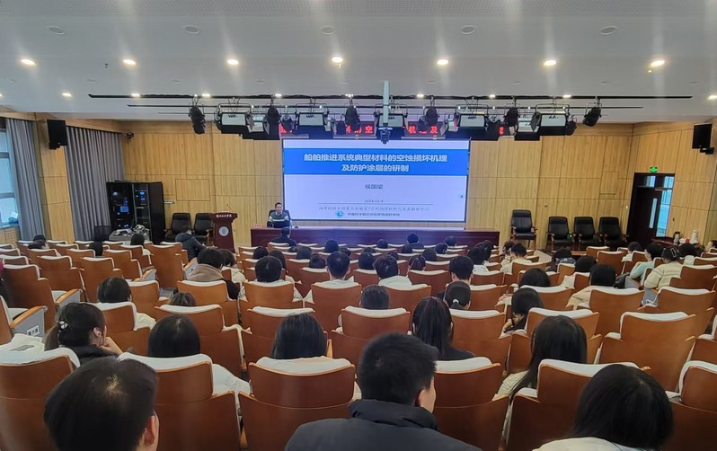 侯国梁研究员长期从事抗空蚀材料的研究工作,对船舶推进系统材料表面的空蚀现象有深入理解。讲座中,侯研究员阐述了空蚀过程中的气泡形成、溃灭特性及瞬间高压、微射流对典型材料的作用机制,着重介绍了先进涂层技术领域的代表性应用范例,并分享了防护涂层的设计、制备及性能研究方面的最新研究成果。此外,他从自身科研创新经验谈起,讨论了如何通过解决科学问题、实现技术创新。